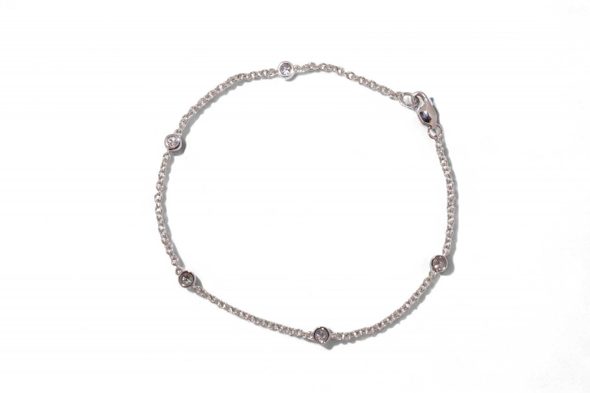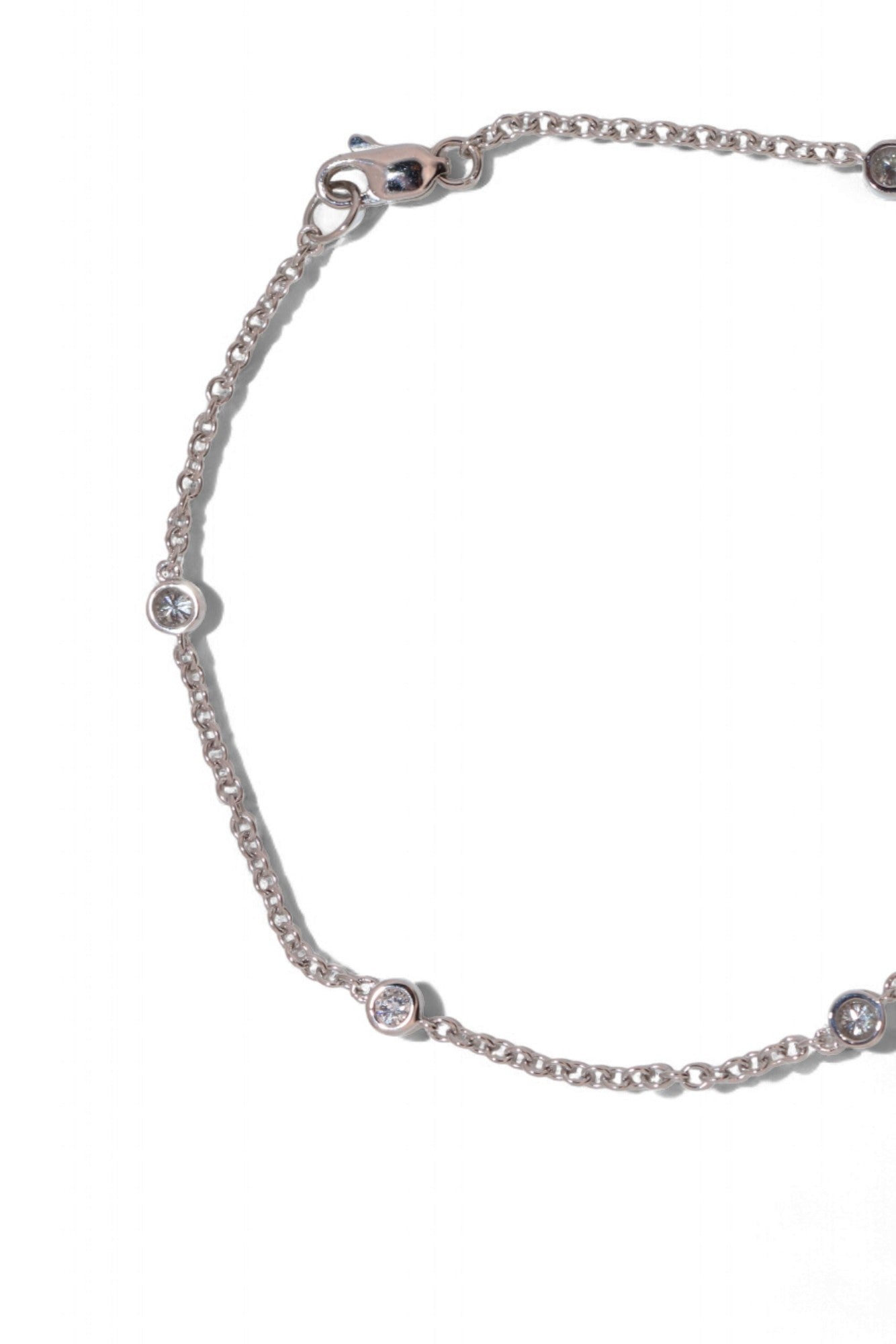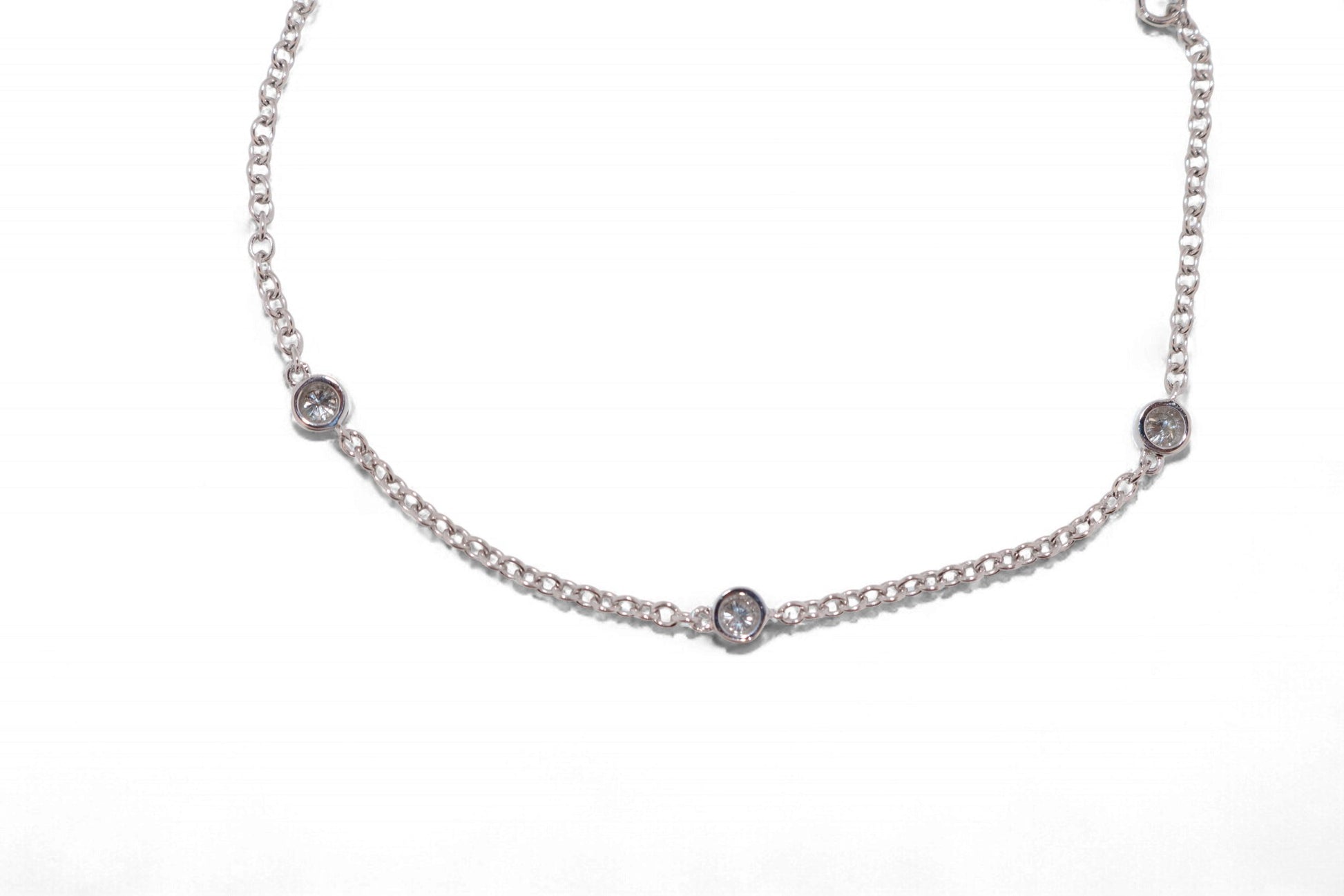 A timeless classic, this Diamonds by the Inch necklace features bezel-set round diamonds evenly spaced along a delicate gold chain. Available in various lengths and diamond sizes, this piece layers beautifully or shines on its own for a refined, minimalist look.