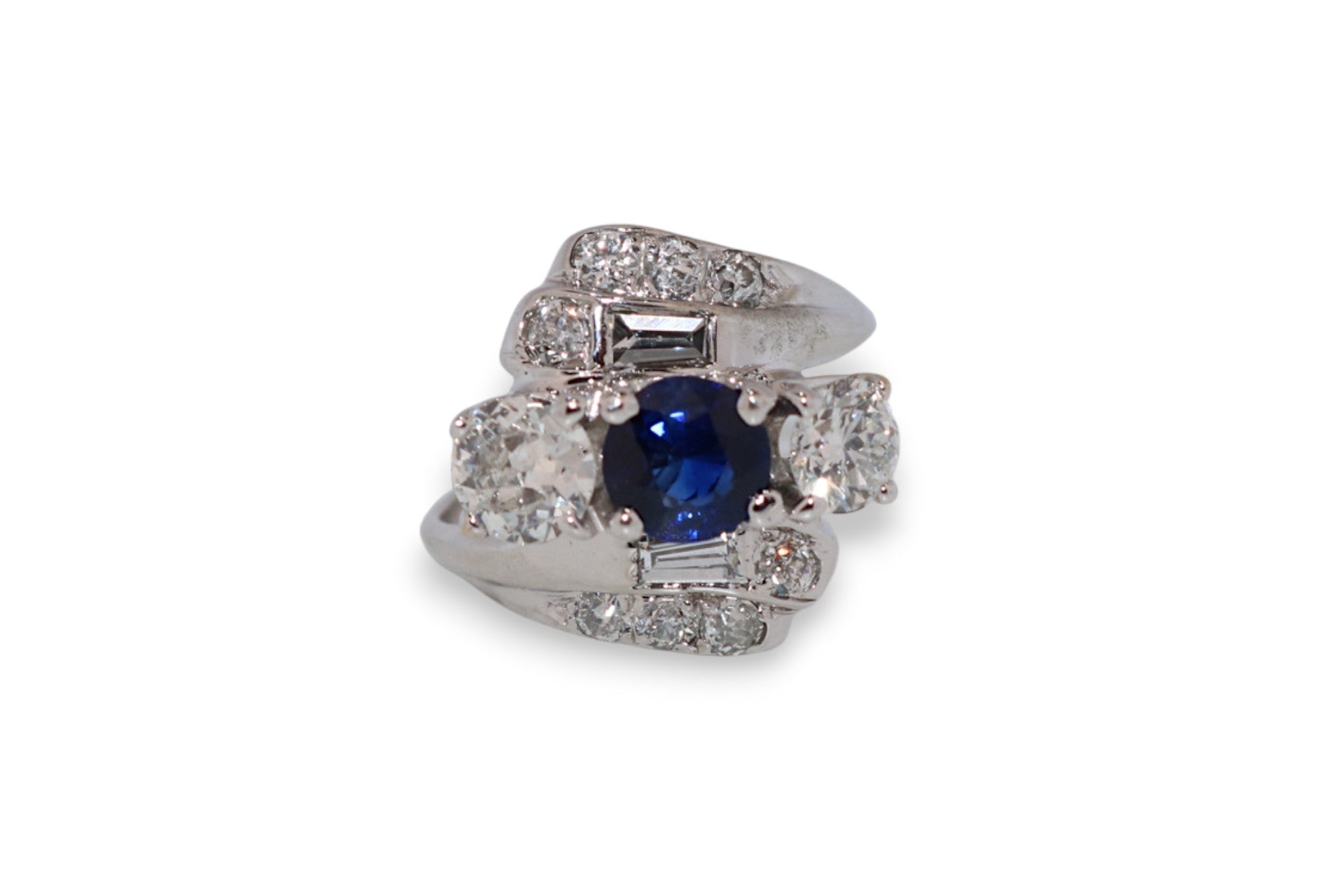 14K White Gold 1.07Ct Blue Sapphire & 1.00Ct Diamond Vintage Estate Ring