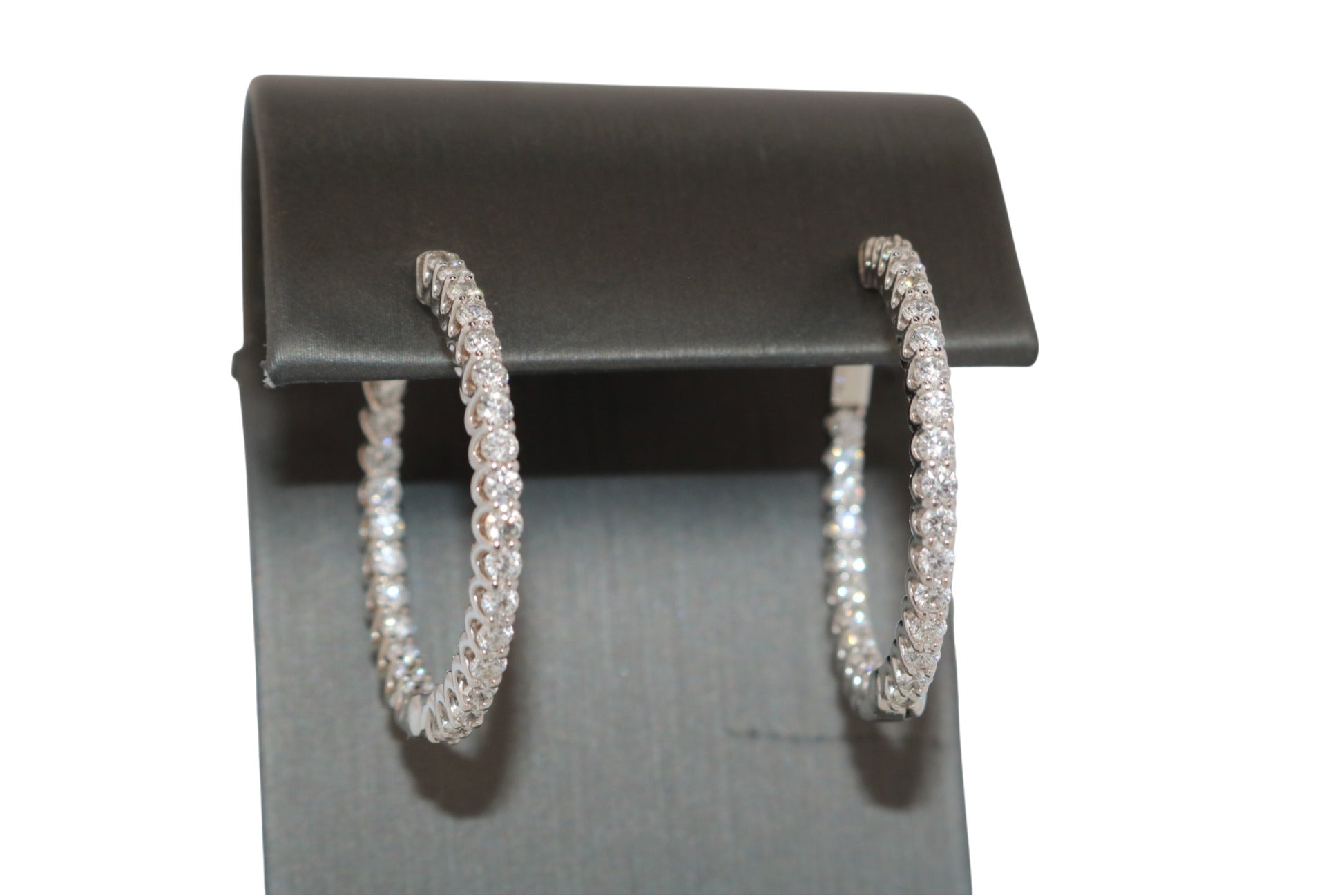 14K White Gold 2.61ctw Natural Diamond Inside-out Hoop Earrings