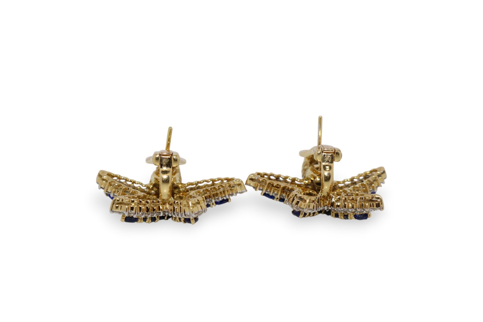 18K Yellow Gold 6.60Ctw Sapphire & 1.50Ctw Diamond Starfish Vintage Earrings (Very Fine)